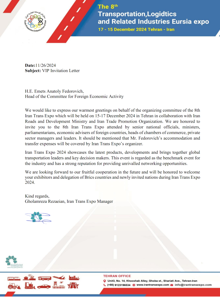 Международная выставка «Транспорт, логистика и смежные отрасли» — это промышленное событие, которое проводится с целью демонстрации и ознакомления с новейшими технологиями, продуктами и услугами, способствующая развитию сотрудничества между национальными компаниями стран БРИКС в области укрепления взаимосвязанности цепочек поставок и развития торгово-инвестиционных потоков.